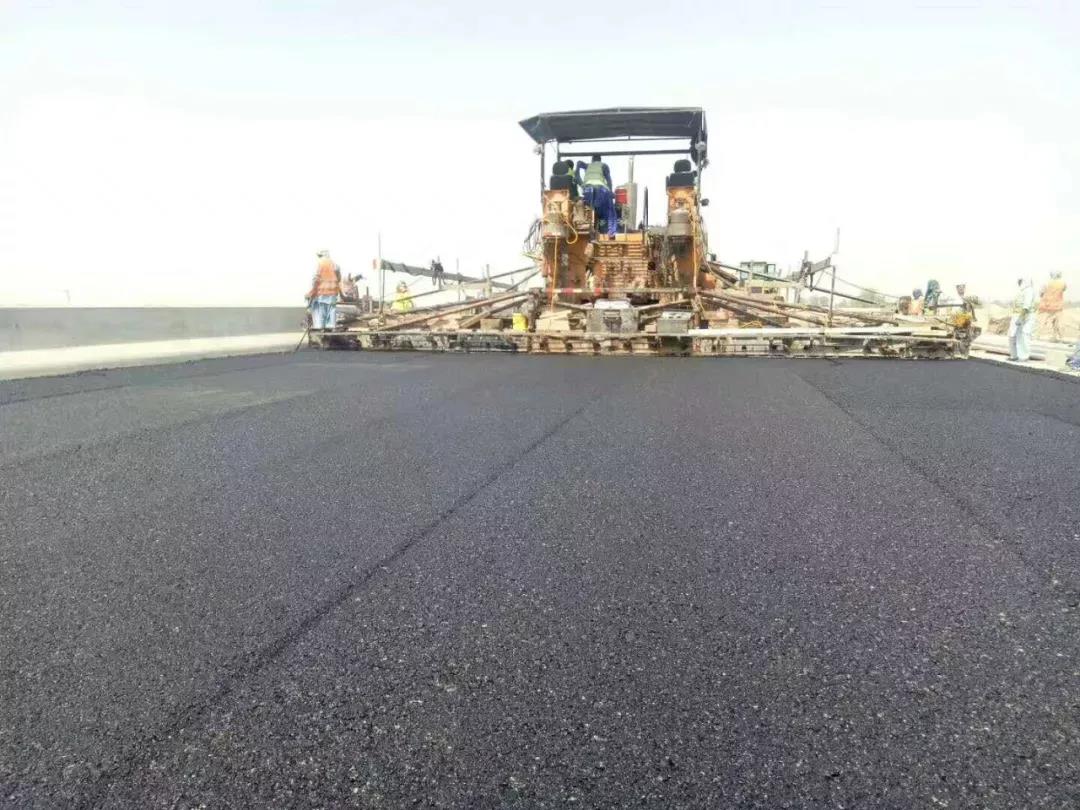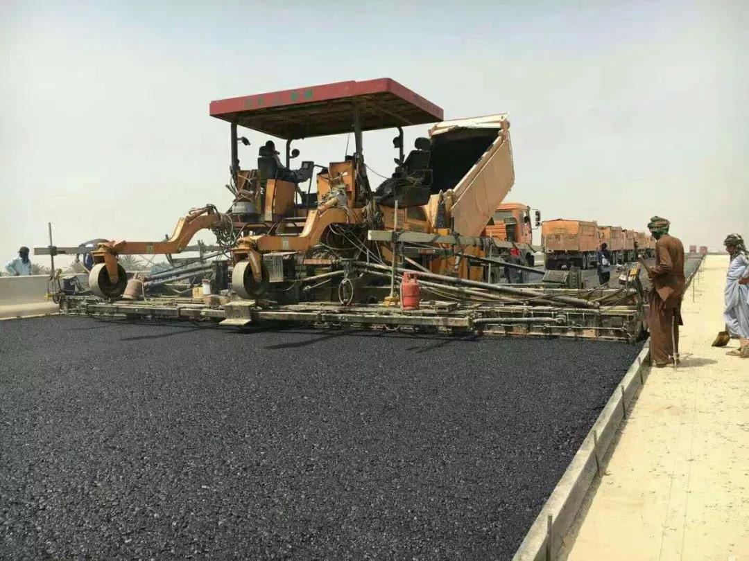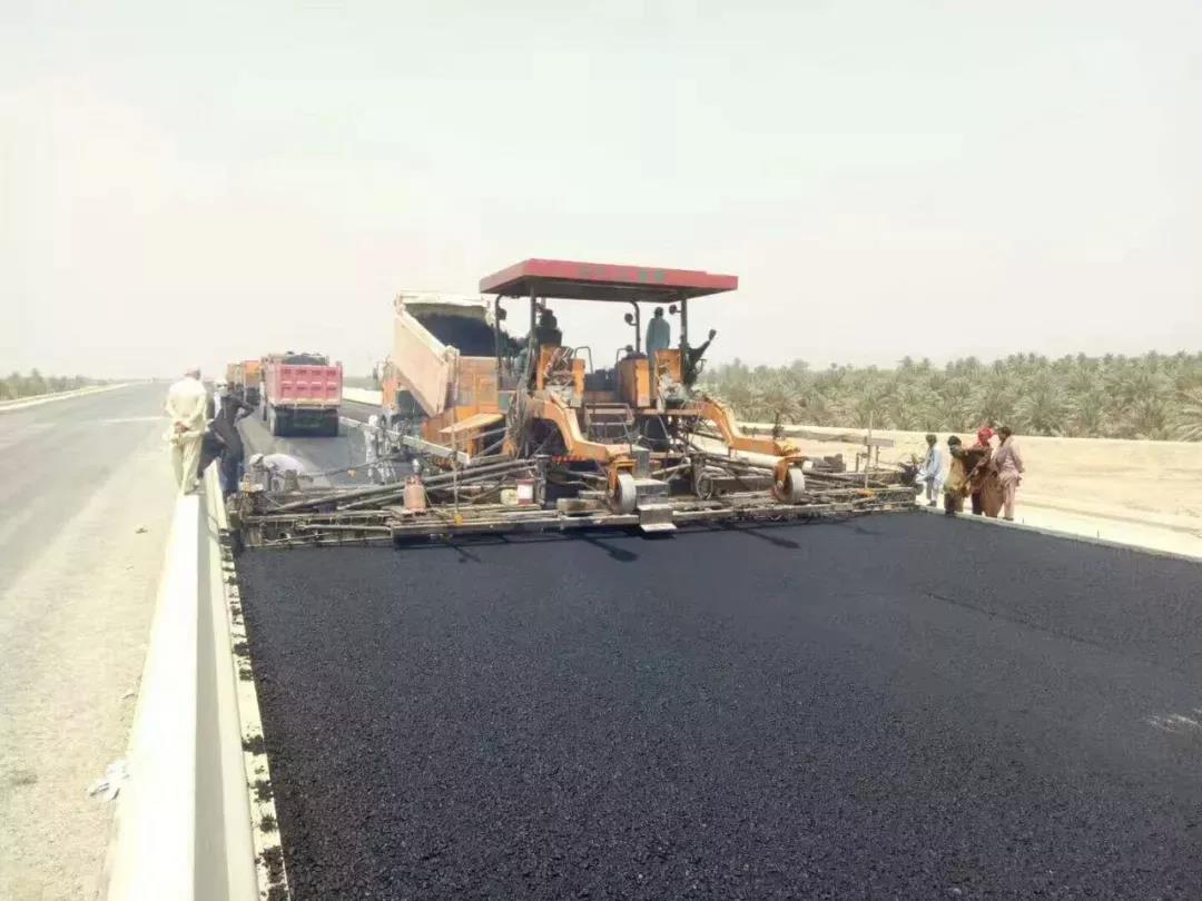 云南陽光道橋購買的中大DT1600抗離析攤鋪機,十年無大修!在巴基斯坦PKM路面二分部瀝清中面層攤鋪順暢進行中!