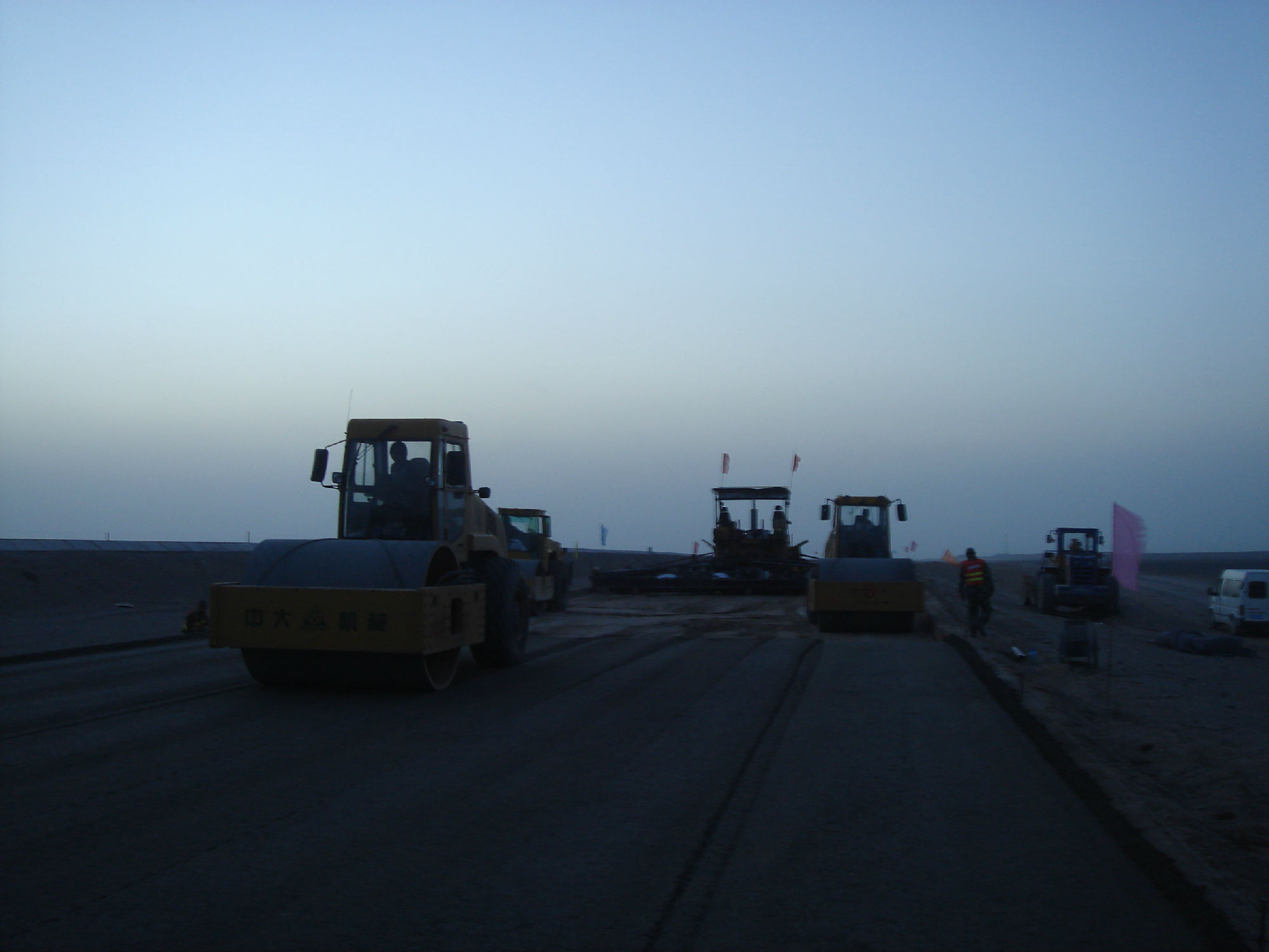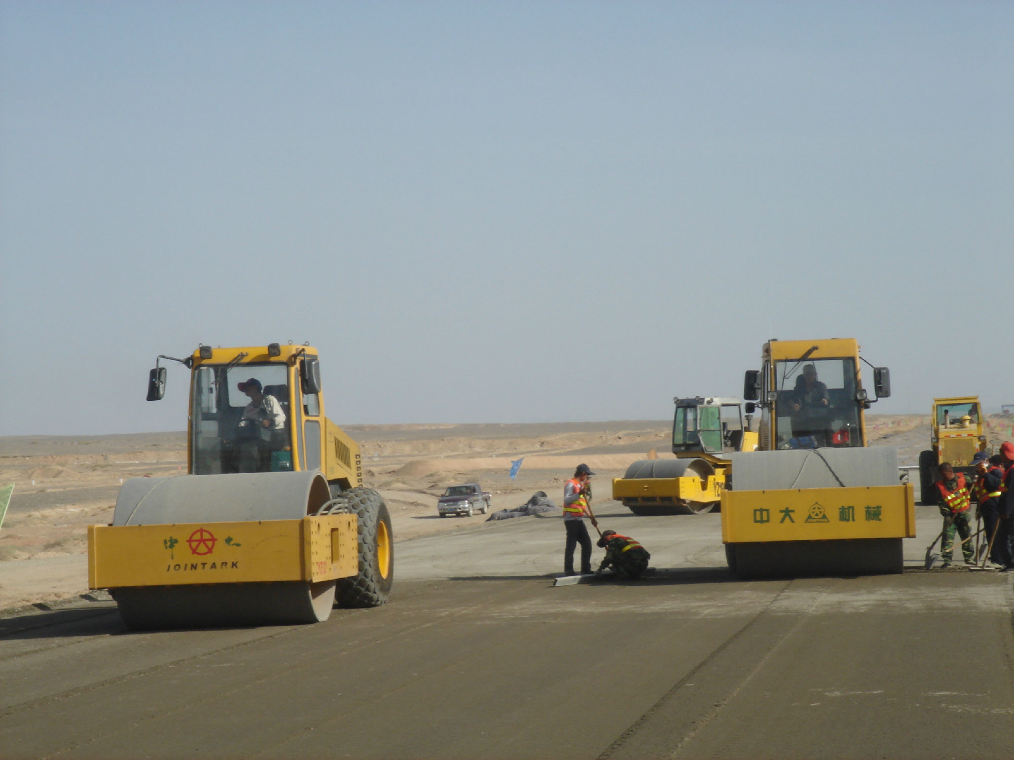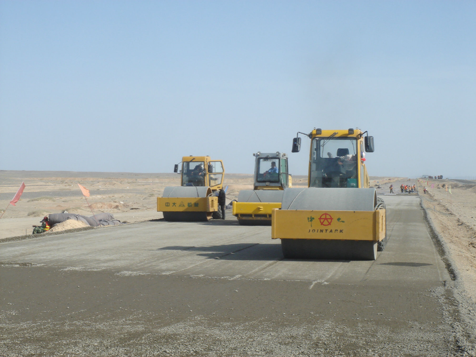 新疆星星峽至哈密高速工程,全線采用中大攤鋪與壓實全套設(shè)備,水穩(wěn)施工采用全幅度大厚度施工工藝,將原來的分層施工工藝創(chuàng)新為大厚度單層施工工藝(兩層并作一層施工),松鋪厚度達(dá)到53CM,僅碾壓三遍,平均壓實度達(dá)到101,平整度、壓實度和整體強(qiáng)度達(dá)到并超過高速公路施工規(guī)范要求,在不增加任何成本的前提下大大的提高了道路的施工質(zhì)量和施工進(jìn)度。
