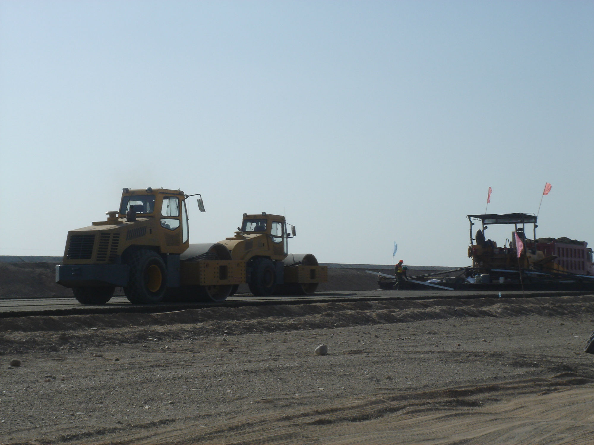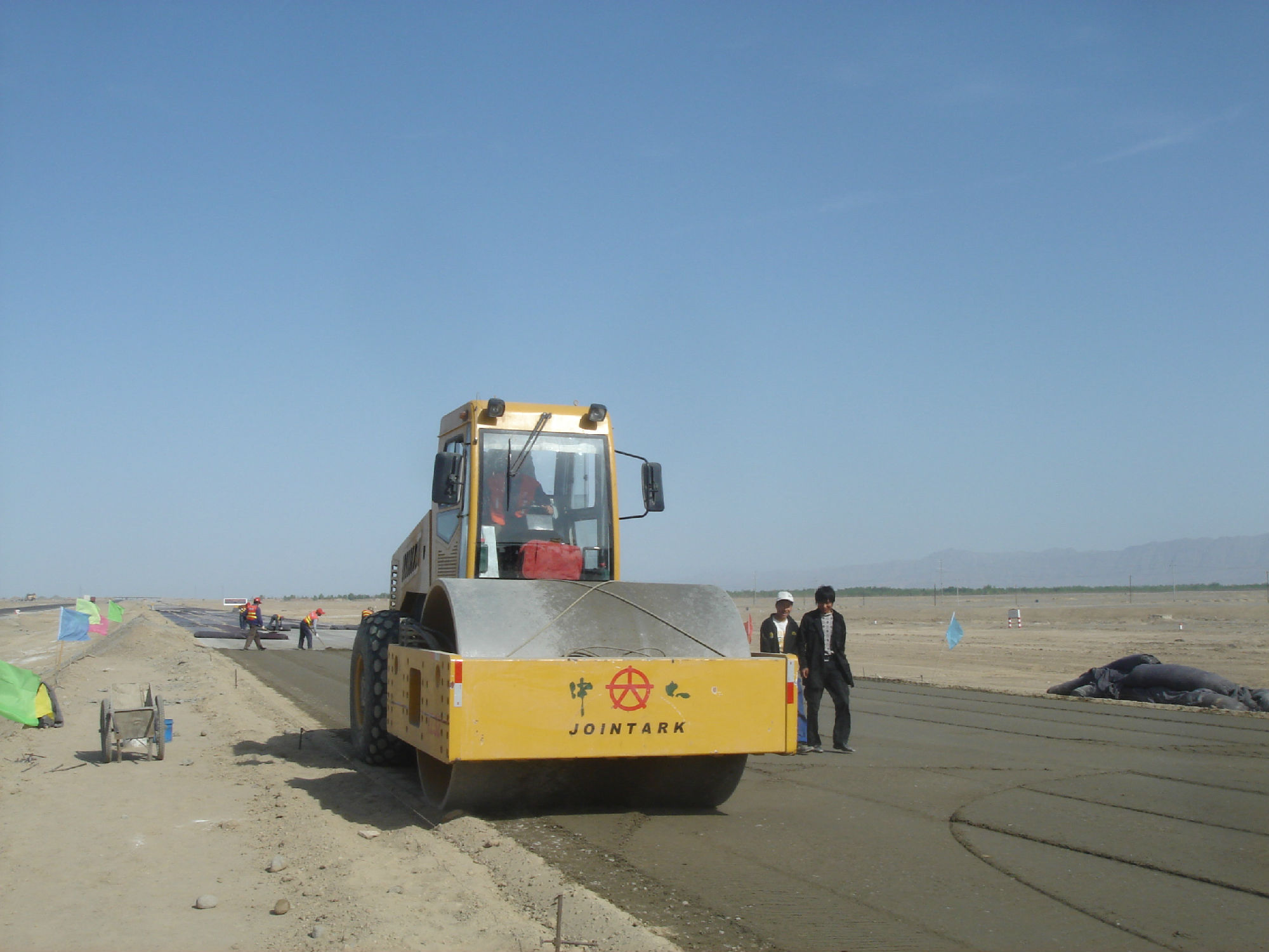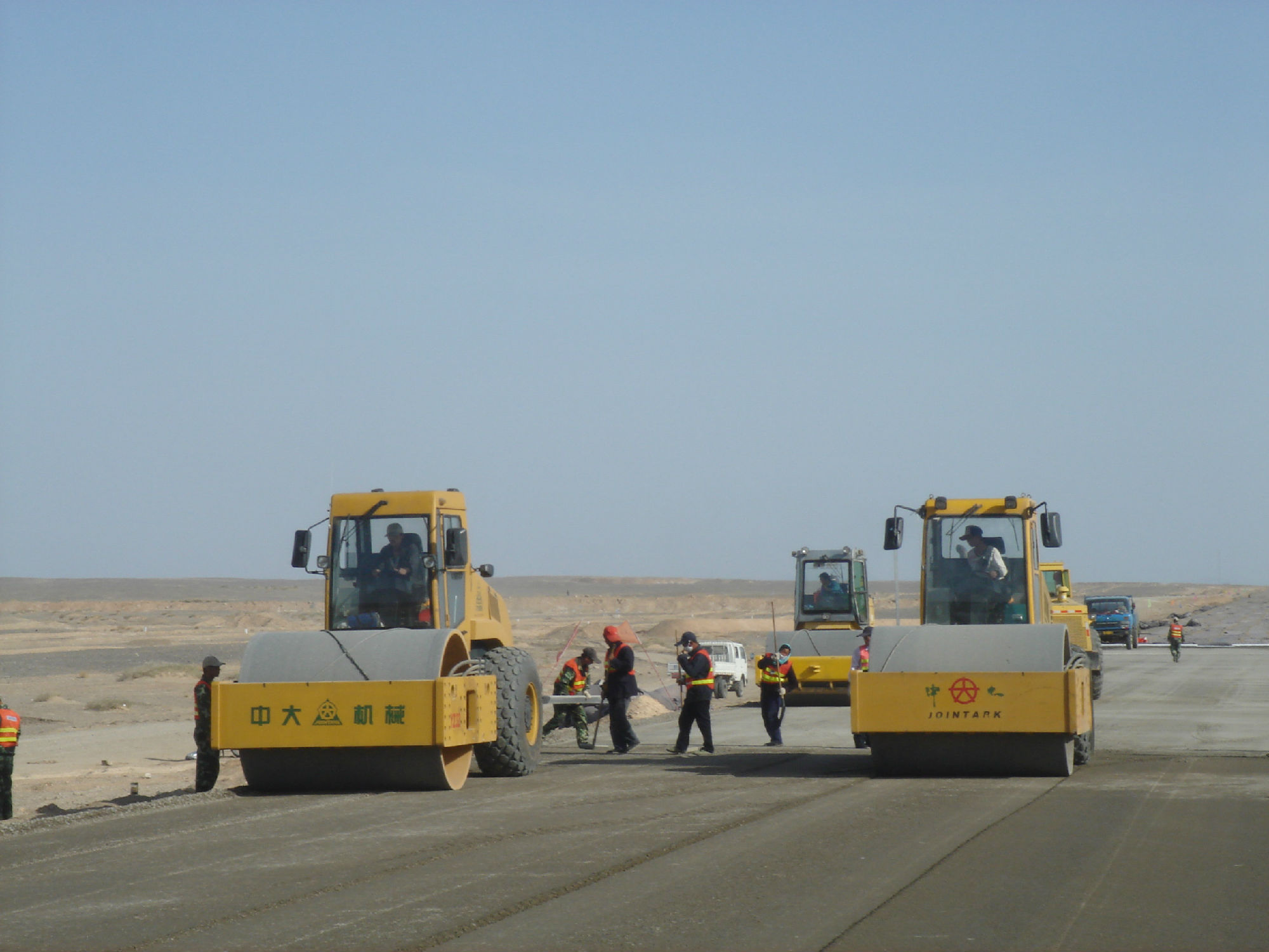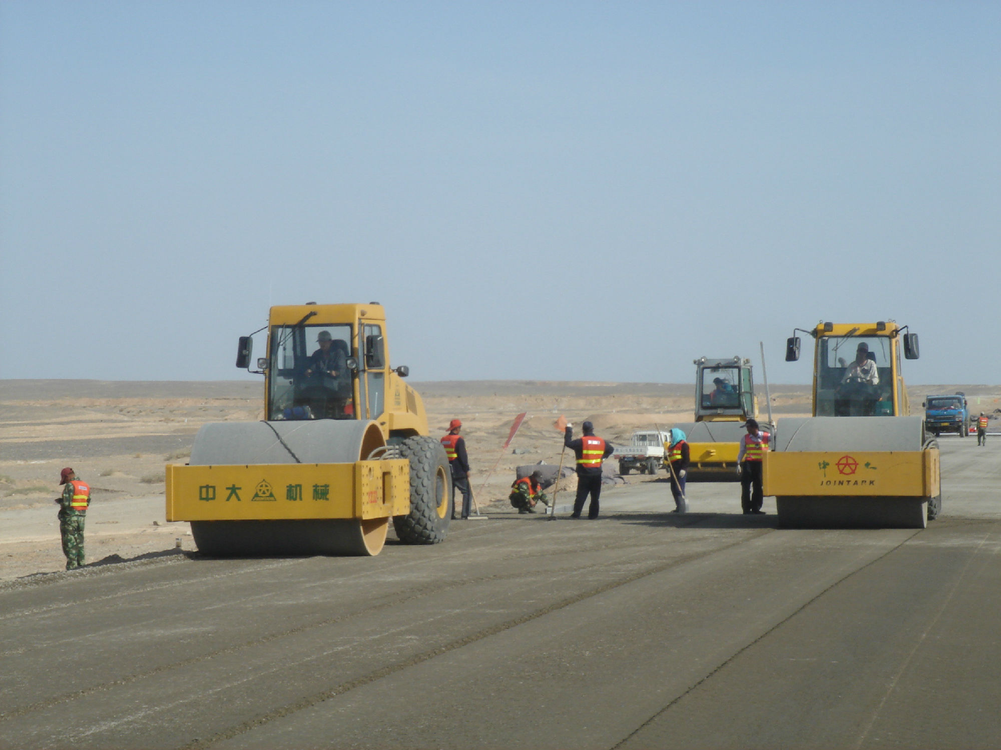 新疆星星峽至哈密高速工程,全線采用中大攤鋪與壓實全套設(shè)備,水穩(wěn)施工采用全幅度大厚度施工工藝,將原來的分層施工工藝創(chuàng)新為大厚度單層施工工藝(兩層并作一層施工),松鋪厚度達(dá)到53CM,僅碾壓三遍,平均壓實度達(dá)到101,平整度、壓實度和整體強(qiáng)度達(dá)到并超過高速公路施工規(guī)范要求,在不增加任何成本的前提下大大的提高了道路的施工質(zhì)量和施工進(jìn)度。